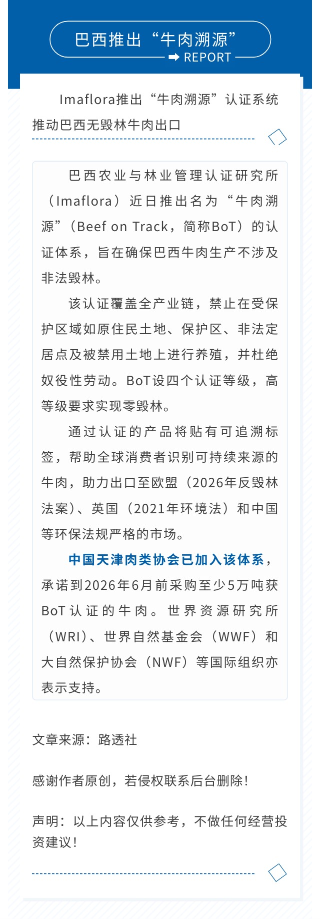 巴西推出“牛肉溯源”认证系统 推动无毁林牛肉出口