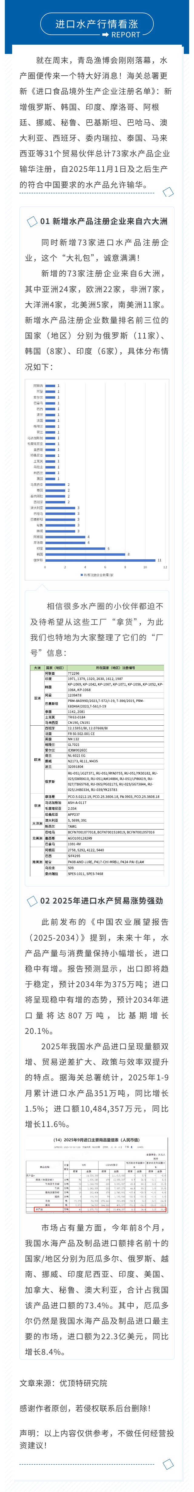 进口水产行情看涨:31贸易伙伴73家工厂新准入!