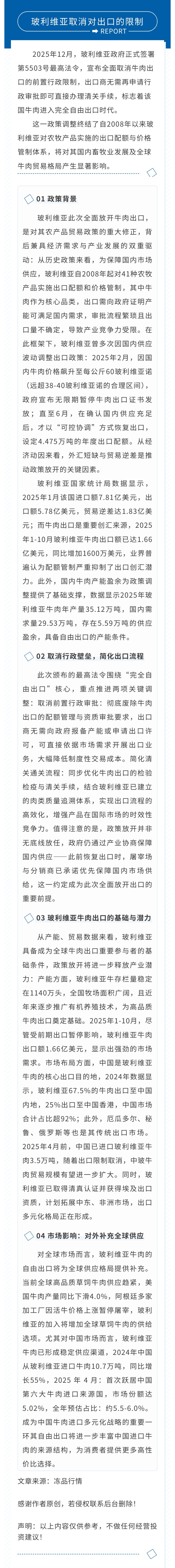 玻利维亚取消对出口的限制,该国牛肉可完全自由出口