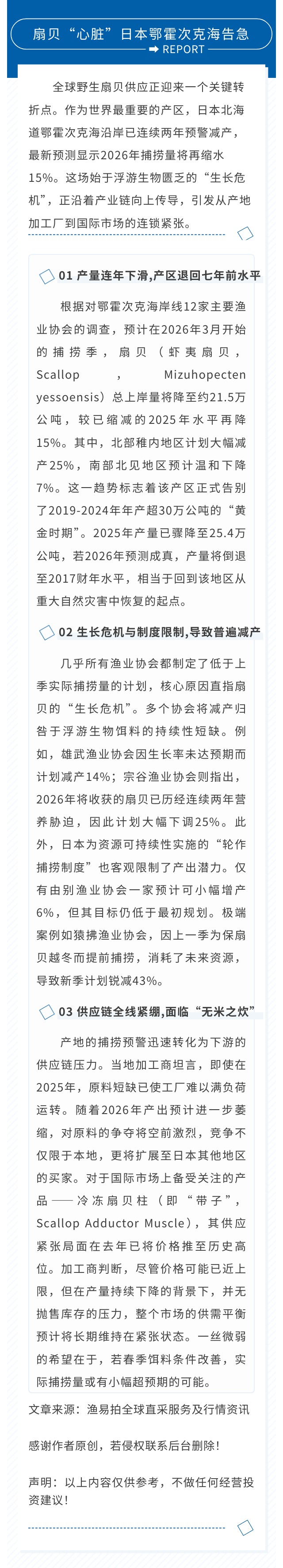 再降15%!全球扇贝“心脏”日本鄂霍次克海告急