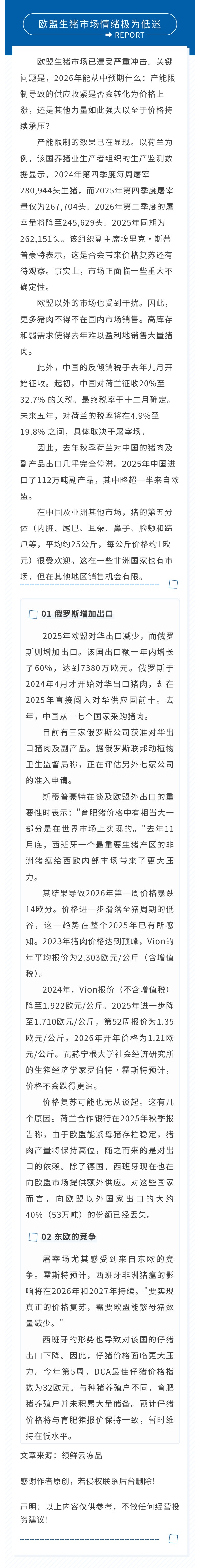 欧盟生猪市场情绪极为低迷,价格将在谷底徘徊复苏无从谈起