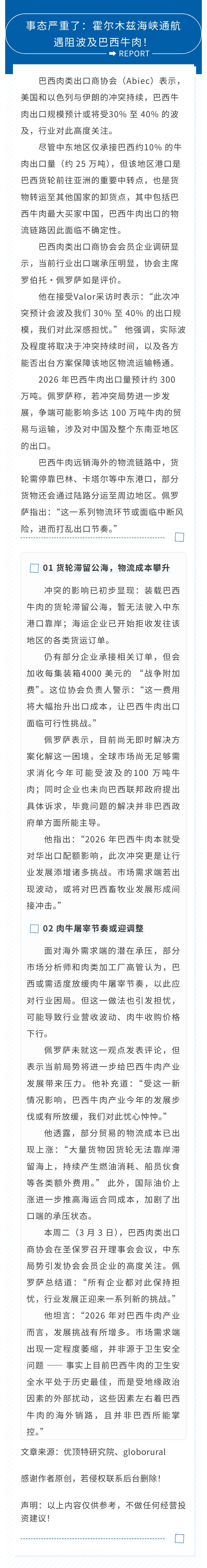 事态严重了:霍尔木兹海峡通航遇阻波及巴西牛肉!