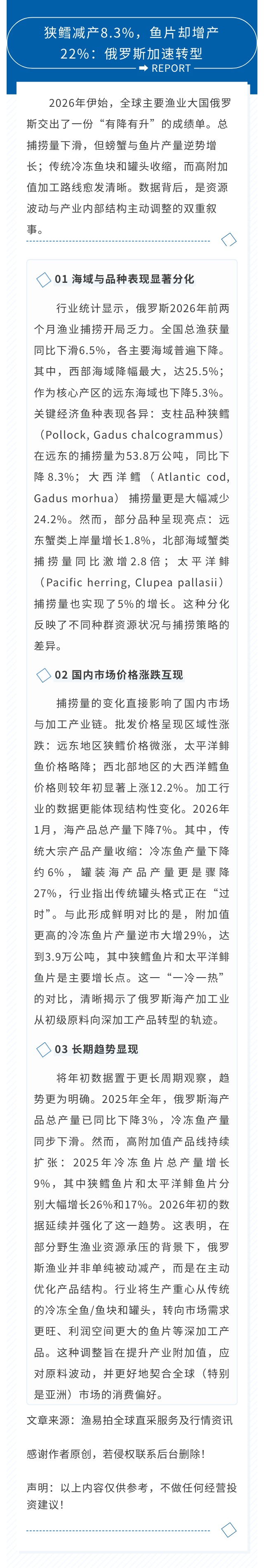 狭鳕减产8.3%