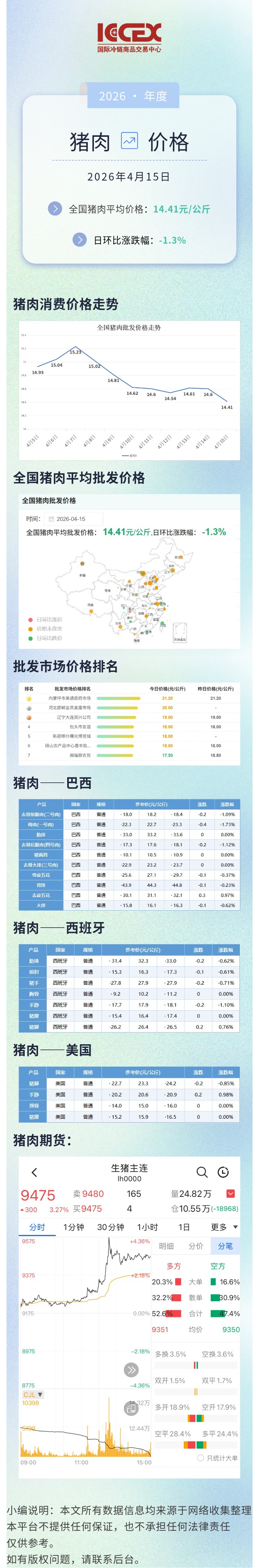 猪肉价格信息2026.4.15