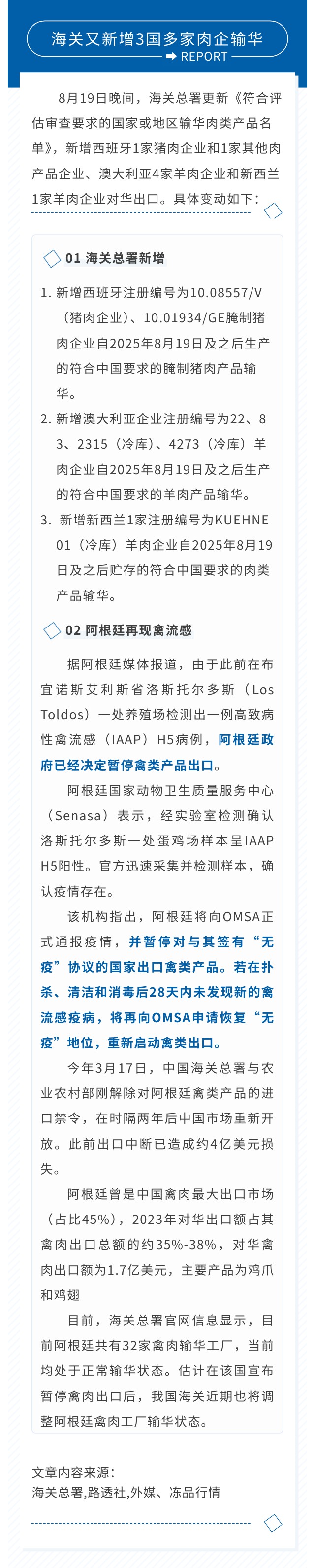 阿根廷突然宣布:暂停禽肉出口!海关又新增3国多家肉企输华