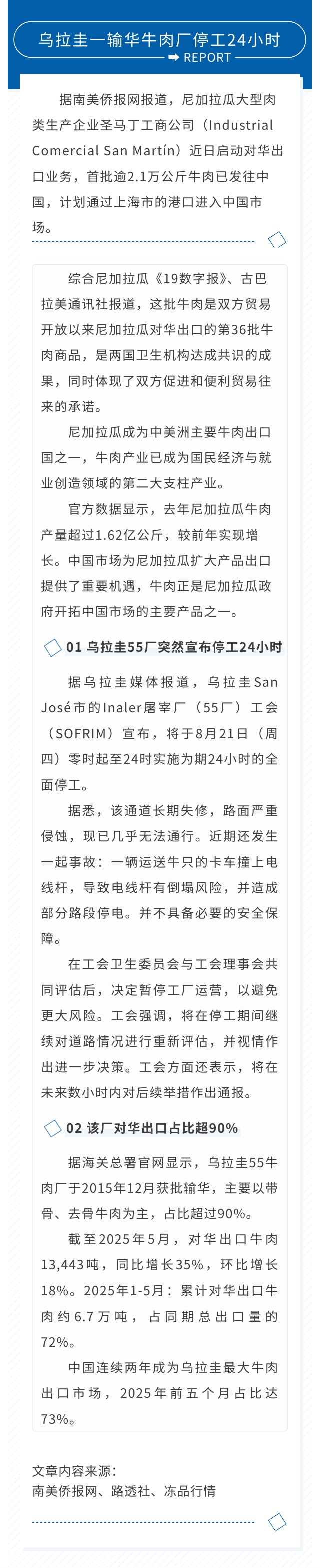 乌拉圭一输华牛肉厂停工24小时!该国首批2.1万公斤牛肉来华