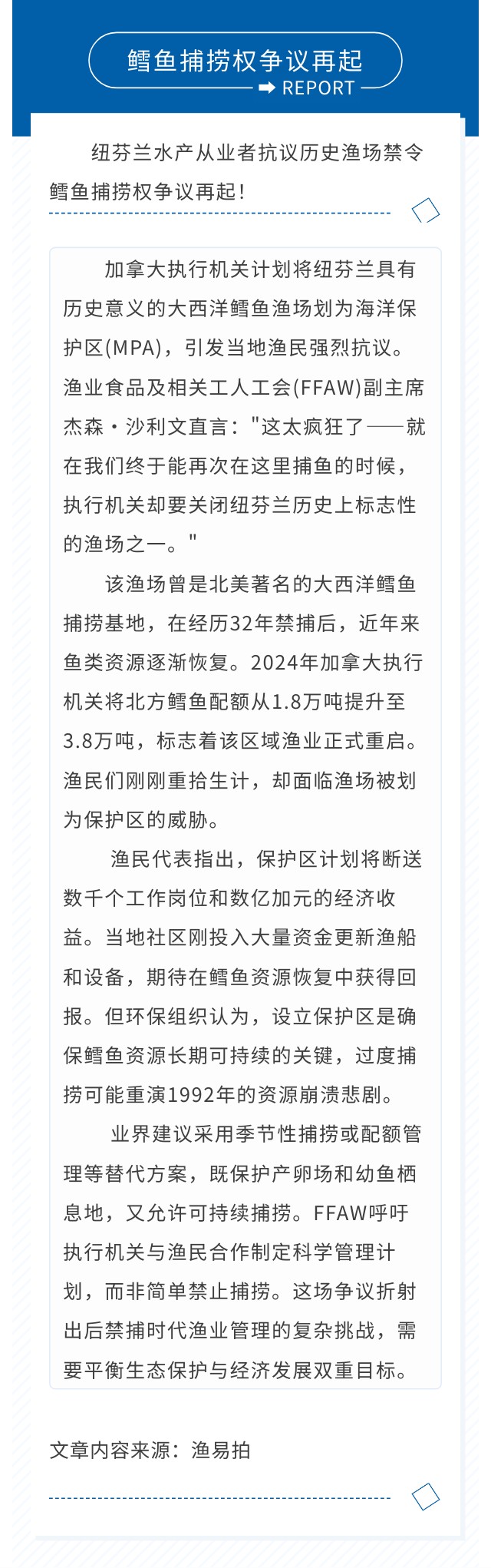 纽芬兰水产从业者抗议历史渔场禁令 鳕鱼捕捞权争议再起!