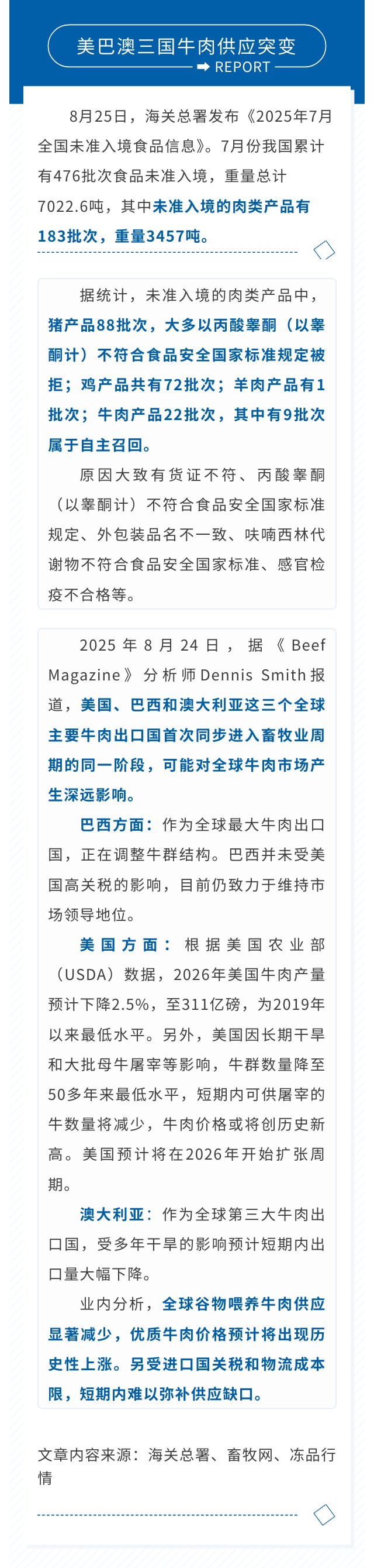 美巴澳三国牛肉供应突变!全球将趋紧!大批进口肉再被拒输华!
