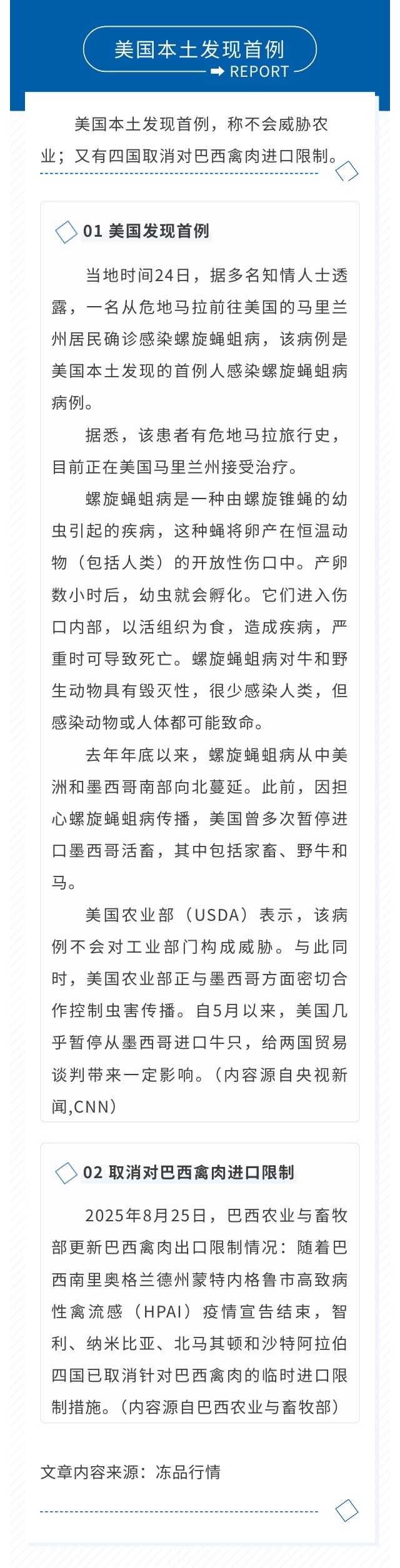 美国本土发现首例,称不会威胁农业;又有四国取消对巴西禽肉进口限制