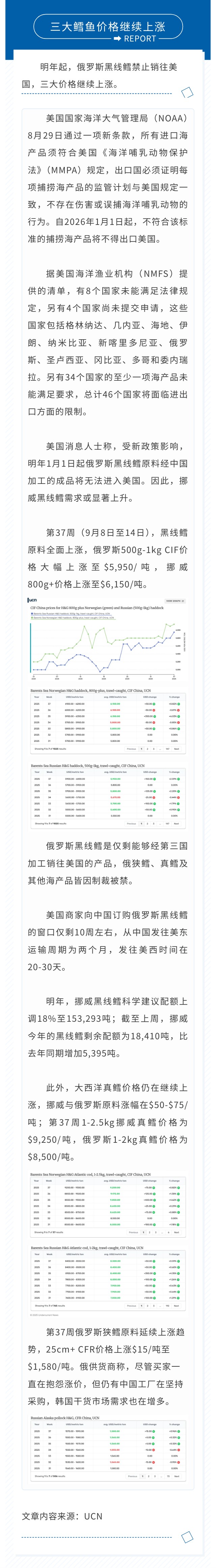 明年起,俄罗斯黑线鳕禁止销往美国,三大鳕鱼价格继续上涨