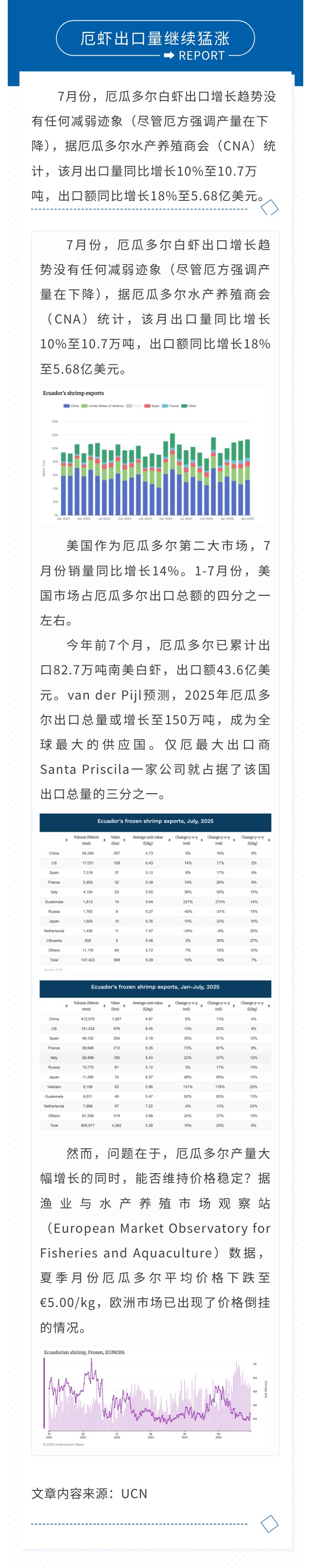 7月份厄虾出口量继续大幅上升,欧洲市场增长迅猛