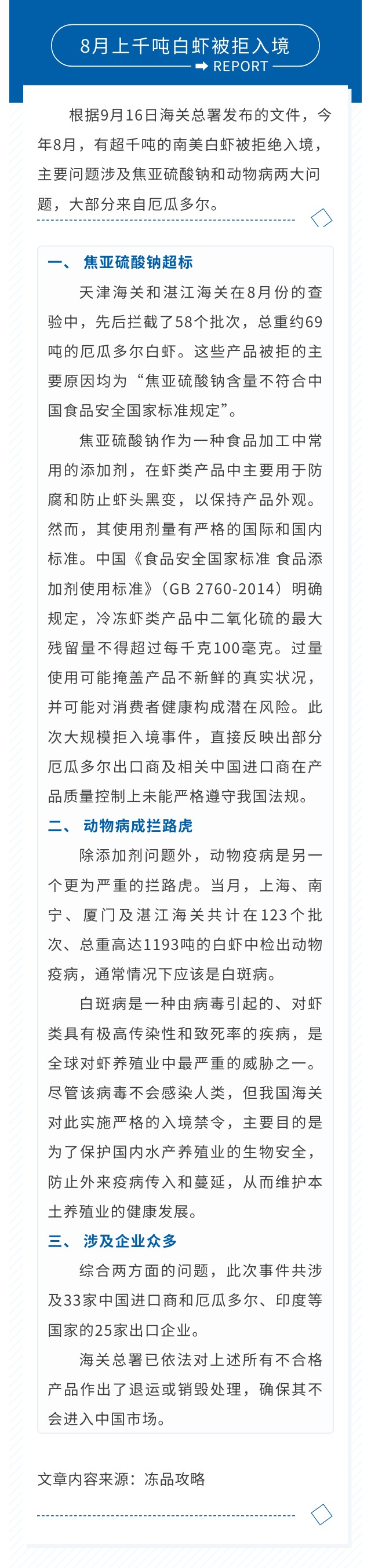8月上千吨白虾被拒入境,主因涉及焦亚磷酸钠和动物病!
