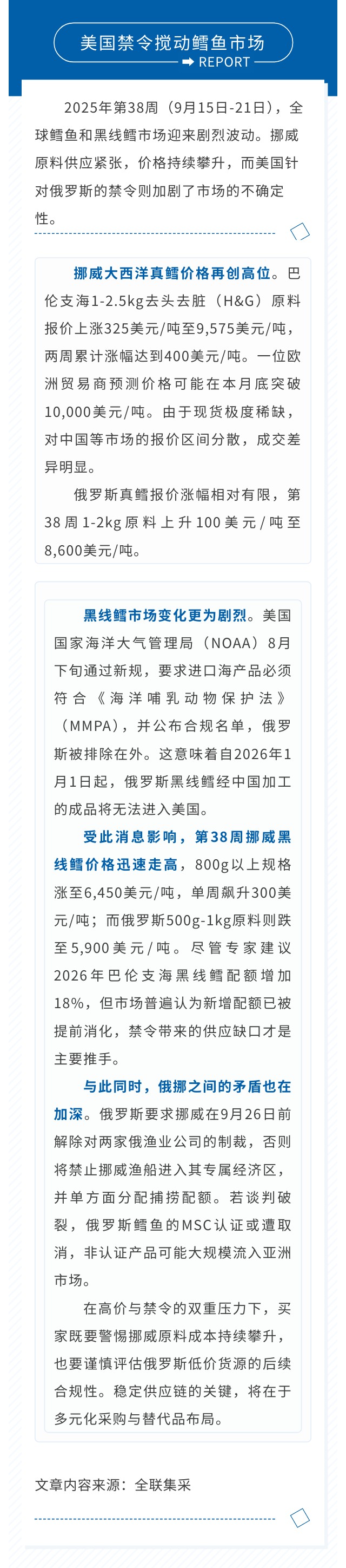 美国禁令搅动鳕鱼市场,挪威真鳕逼近万元关口!
