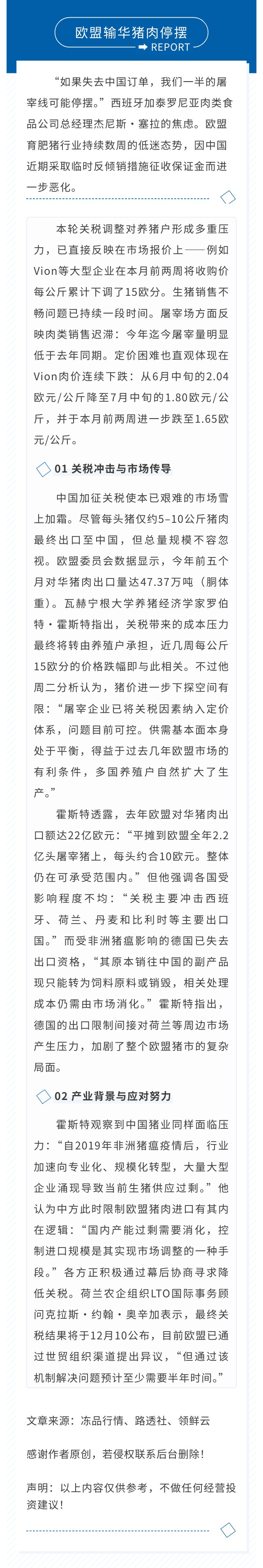 欧盟输华猪肉停摆!通过世贸机制解决“至少需要半年时间”!
