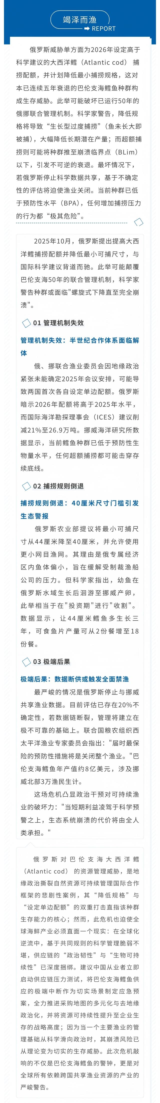 竭泽而渔!俄罗斯拟下调鳕鱼捕捞尺寸