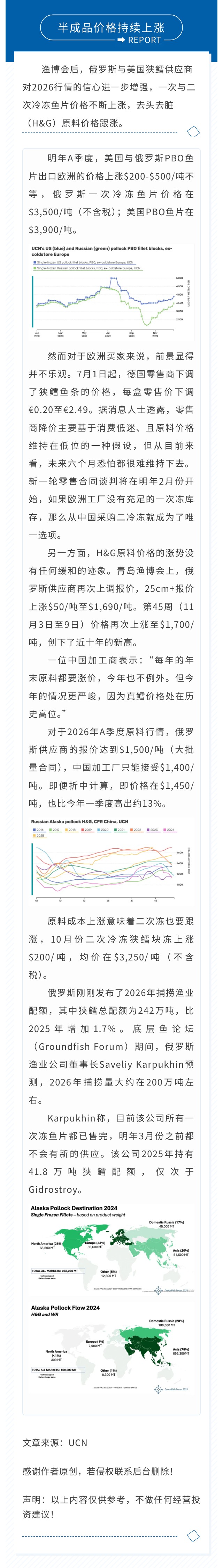 狭鳕原料、半成品价格持续上涨,欧洲压力陡增