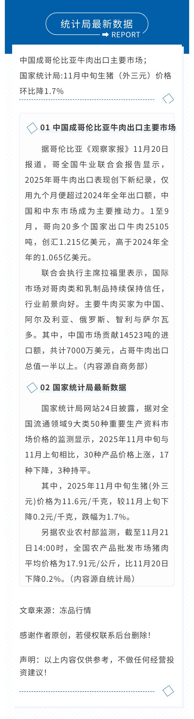 国家统计局:11月中旬生猪(外三元)价格环比降1.7%