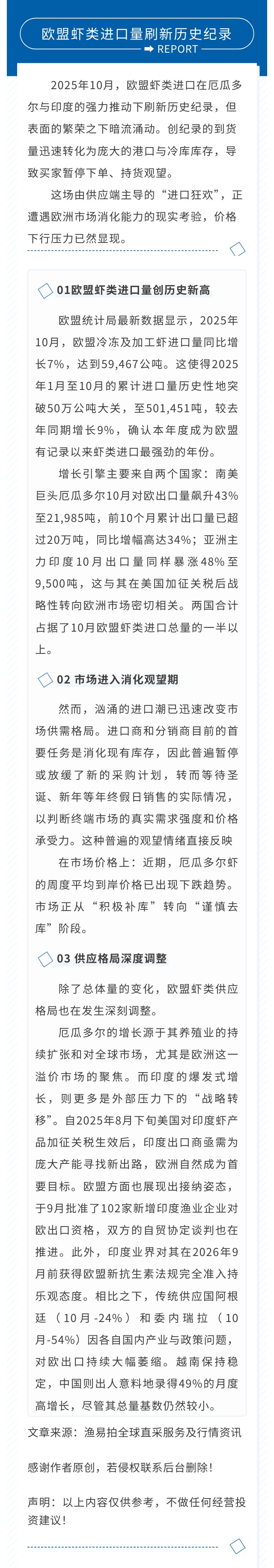欧盟虾类进口在厄瓜多尔与印度的强力推动下刷新历史纪录