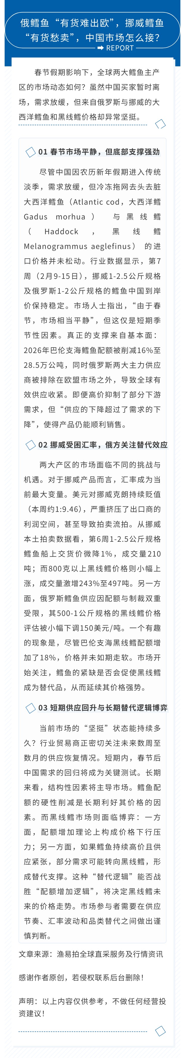 俄鳕鱼“有货难出欧”,挪威鳕鱼“有货愁卖”,中国市场怎么接?