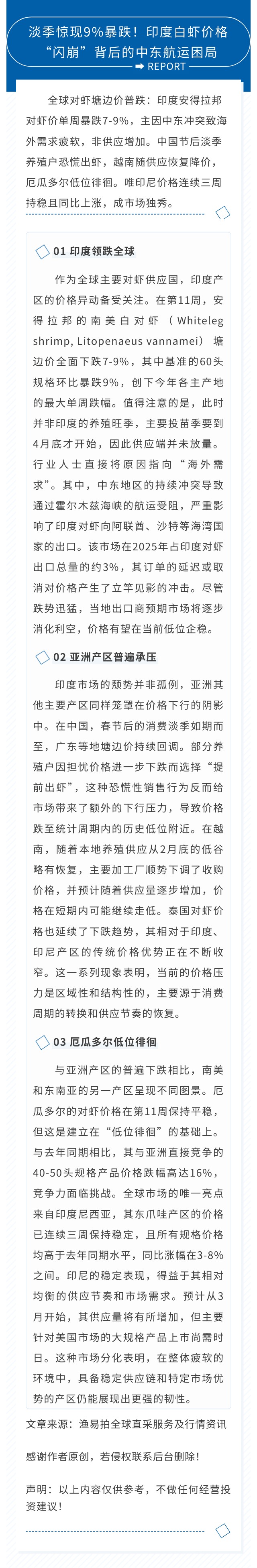 淡季惊现9%暴跌!印度白虾价格“闪崩”背后的中东航运困局