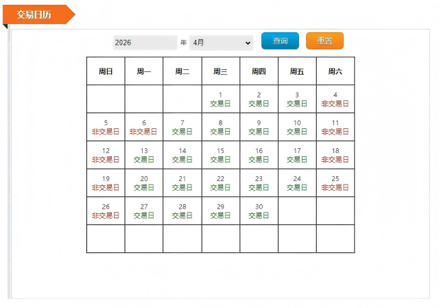2026年4月交易日历