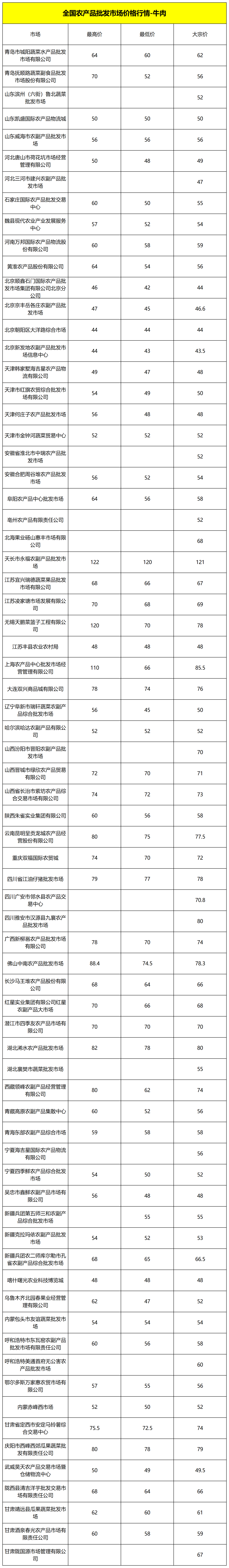 全国批发市场牛肉价格行情-2024年6月3日